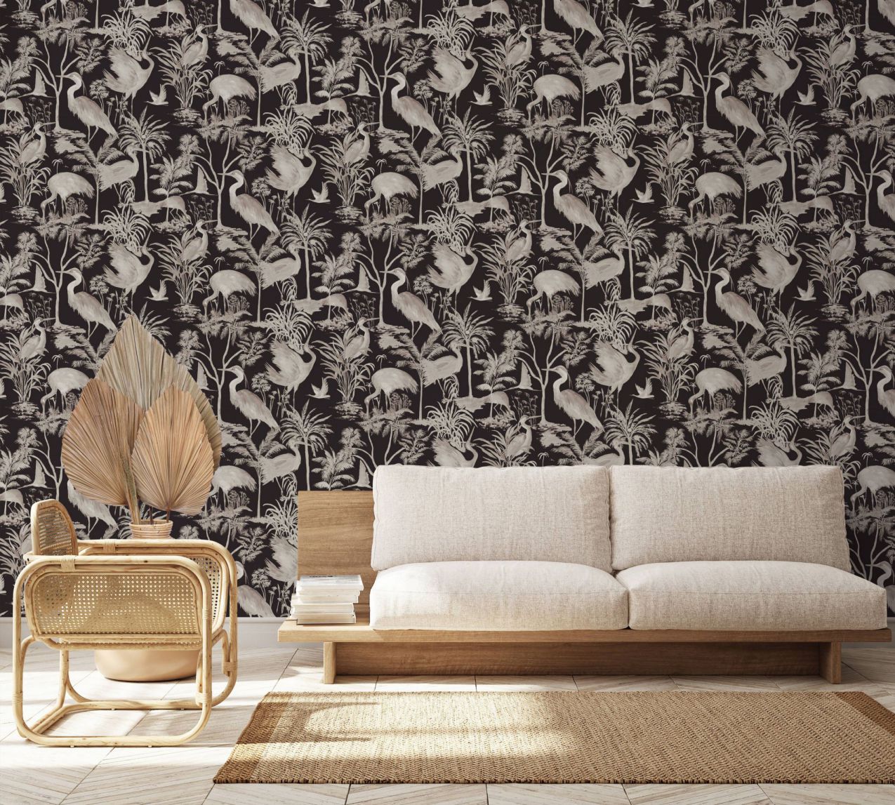 Ταπετσαρία Μαύρη Γκρι Φλοράλ Μοντέρνα για Σαλόνι Κρεβατοκάμαρα Κουζίνα και άλλους χώρους Made in Germany 10,05 x 0,53 m